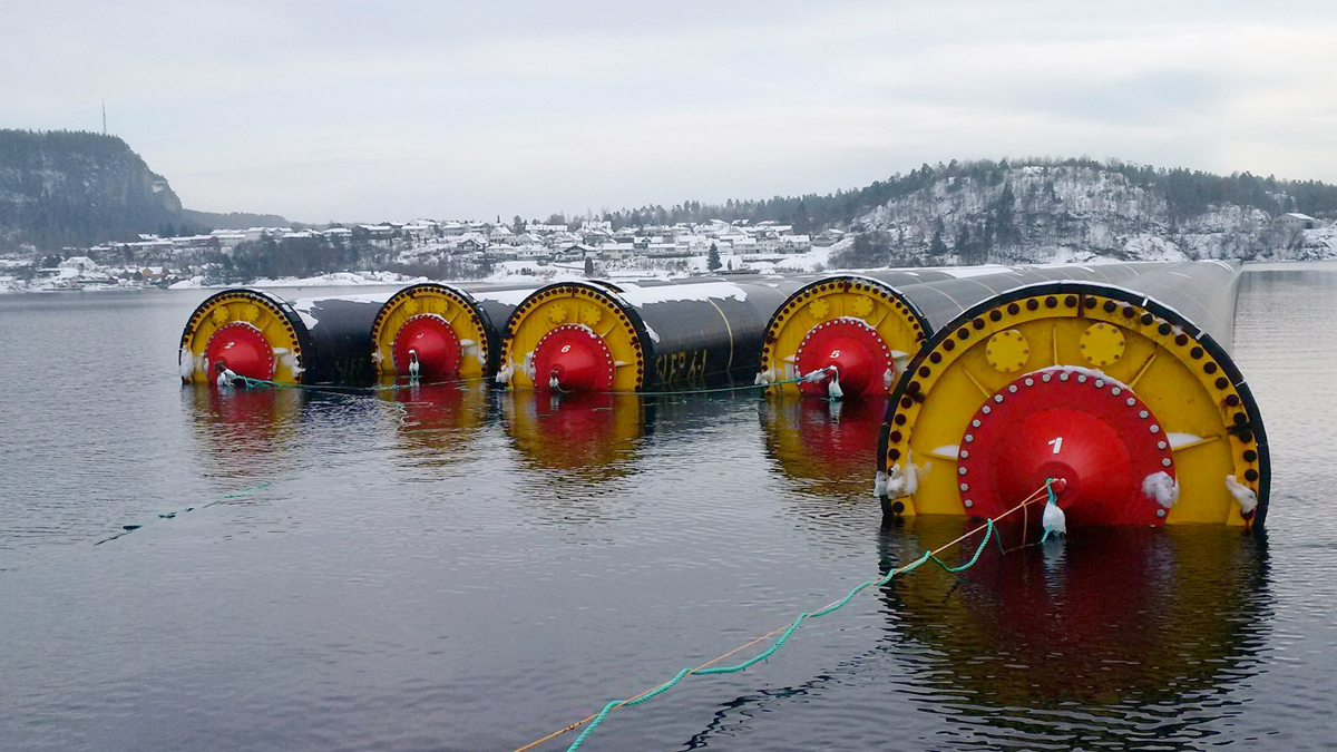 625m long pipes being towed from Norway – Courtesy of Pipelife Norge A/S