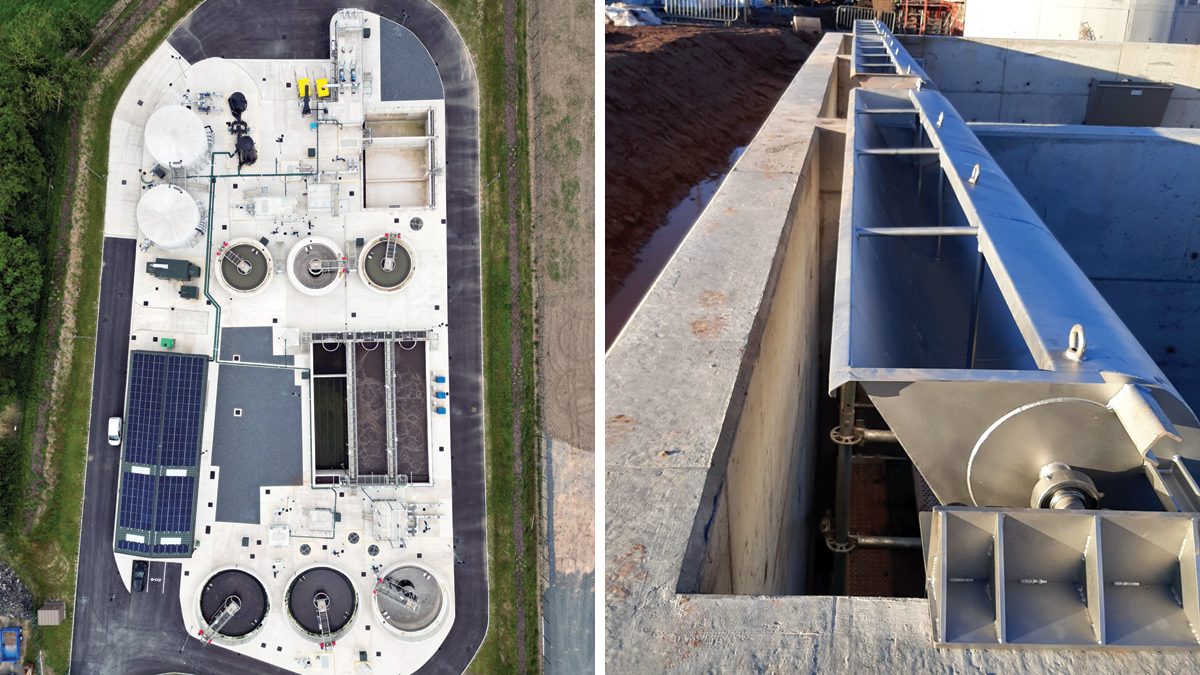 (left) Ards North WwTW – Courtesy of NI Water, and (right) storm tanks tipping bucket installation – Courtesy of BSG Civil Engineering Ltd