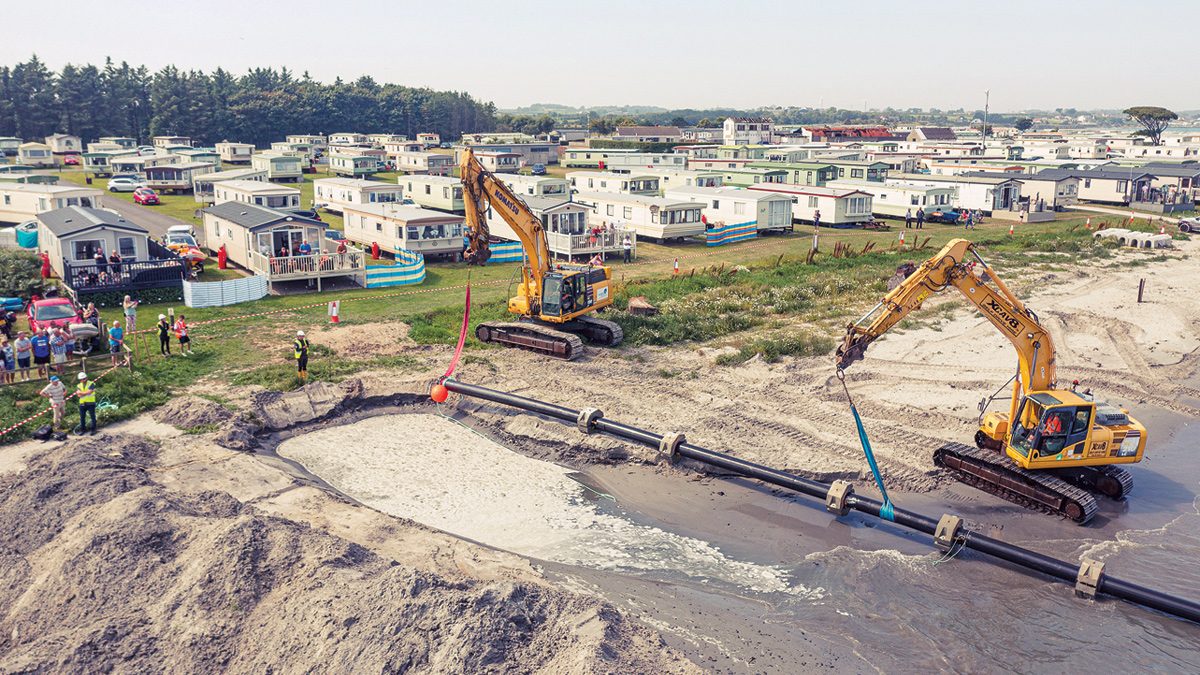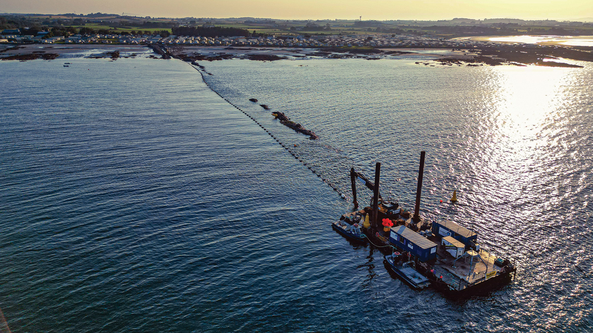 - Phase 1: Works comprised shore-based operations to prove the trench to depth along the intertidal zone, consisting of rock breaking, excavation and temporary backfilling of the trench. This phase was designed to mitigate the risk of delay due to adverse weather conditions and capitalised on large spring tides by utilising land-based equipment during the winter months. It would also minimise the disruption to the public by reducing the duration of pipeline installation and final connection on the beach.
