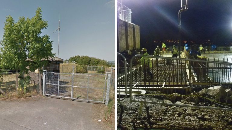 (left) Old Crieve SR and (right) Crieve cell 1 base pour with existing reservoir in service shown to the left – Courtesy of NI Water