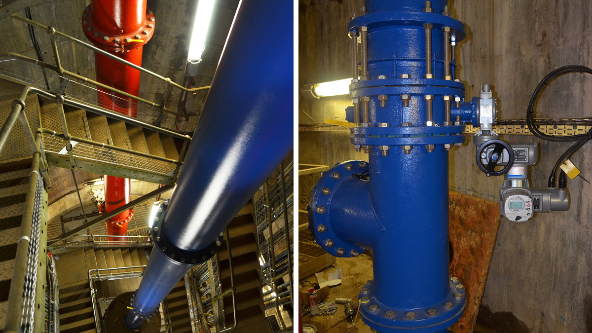 The work also saw the replacement of approximately 8000 corroded mild steel flange bolts with stainless steel equivalents. Each bolt had to be accurately torqued and the loading recorded by the engineer. As with the pipework, the flanges, pumps and valves were cleaned and re-coated with protective paint. Actuators were replaced in the chambers and at ground floor level.