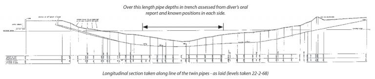 Original as-built drawing from 1968 showing the profile of the pipelines beneath the Barking Creek – Courtesy of Optimise