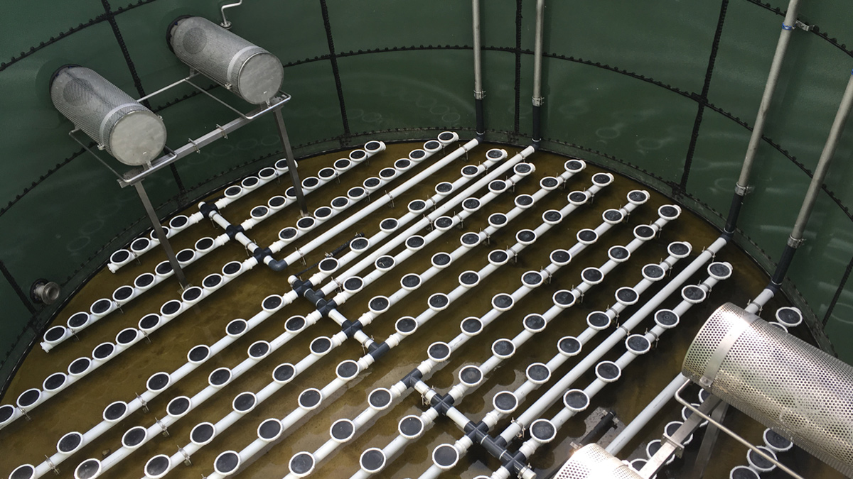A view of the internal aeration pipework within the MBBR bioreactor – Courtesy of Severn Trent
