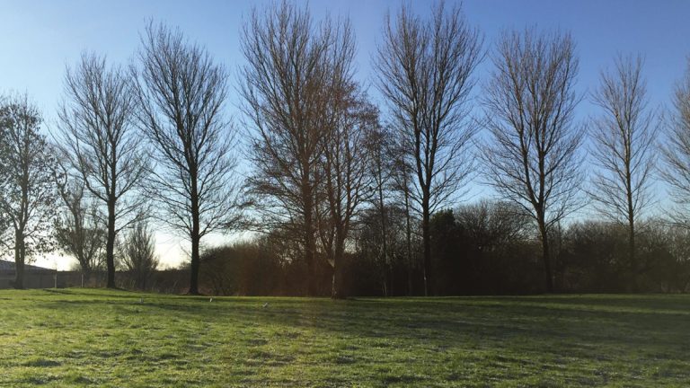 The constraints of the site provided several design challenges. The low ground level in the upstream catchment meant the incoming pipe to the basin was 2m below existing ground level. Therefore to achieve the desired 200m3 storage volume, a gabion wall was required along one side of the basin and nearly 3,000m3 of earthworks. Additionally, behind the row of trees on the site is a 6m deep pond with a level of 1.5m below ground level. The pond combined with the challenging ground conditions described previously meant appropriate design measures had to be taken to ensure the basin was fully lined so it did not fill with groundwater, drain the pond, move contaminants within the ground or allow contaminants into the surface water. To overcome this challenge a geosynthetic clay liner with 1m lapping, clay stank and fin drain were incorporated into the design.