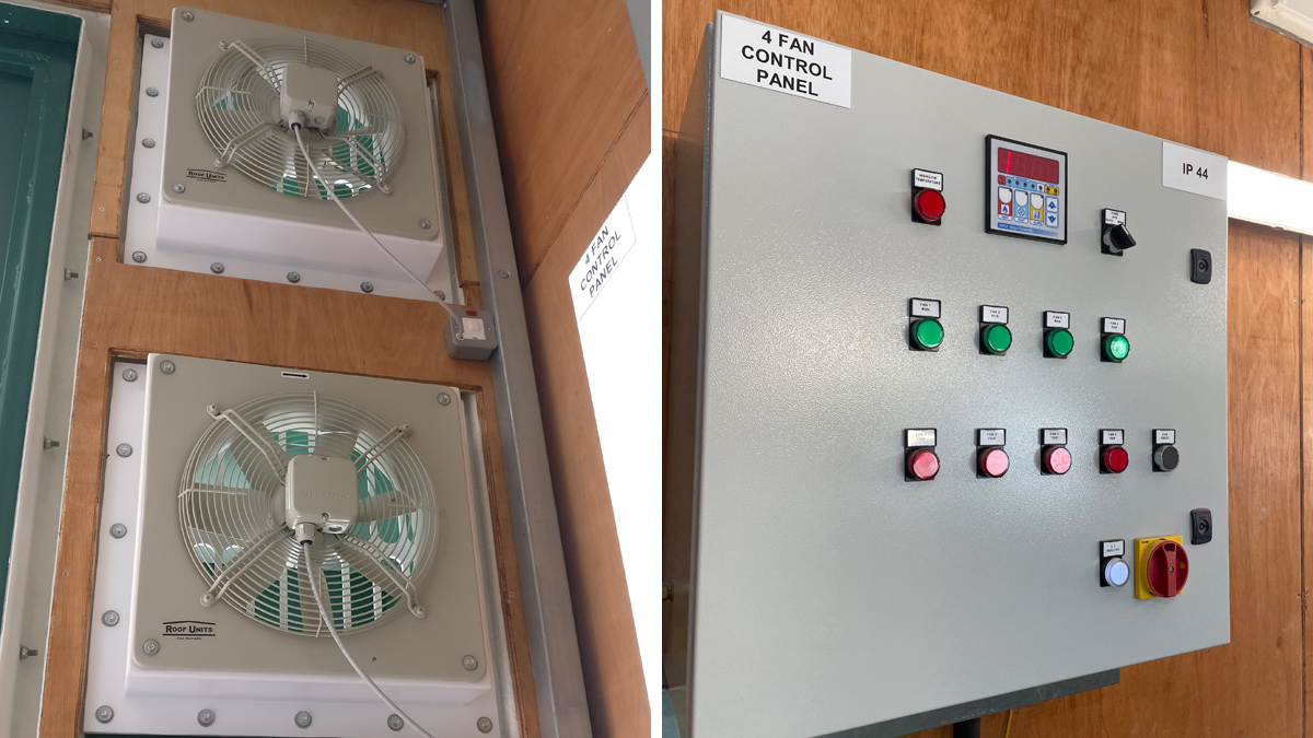 (left) Forced ventilation provided for the transformer and (right) fan control panel provided in the transformer kiosk for ventilation – Courtesy of Arup