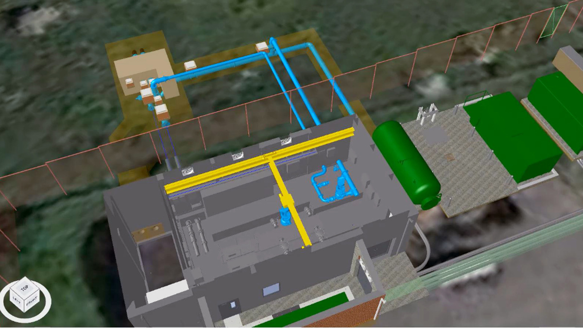 The remodelling of the WBS required detailed assessment to understand how it could be maintained as an operational site throughout the works. The initial proposal was to construct a separate temporary containerised booster station in adjacent land to facilitate taking the site offline. The extent of the existing site was 3D laser surveyed and a 3D BIM model built.