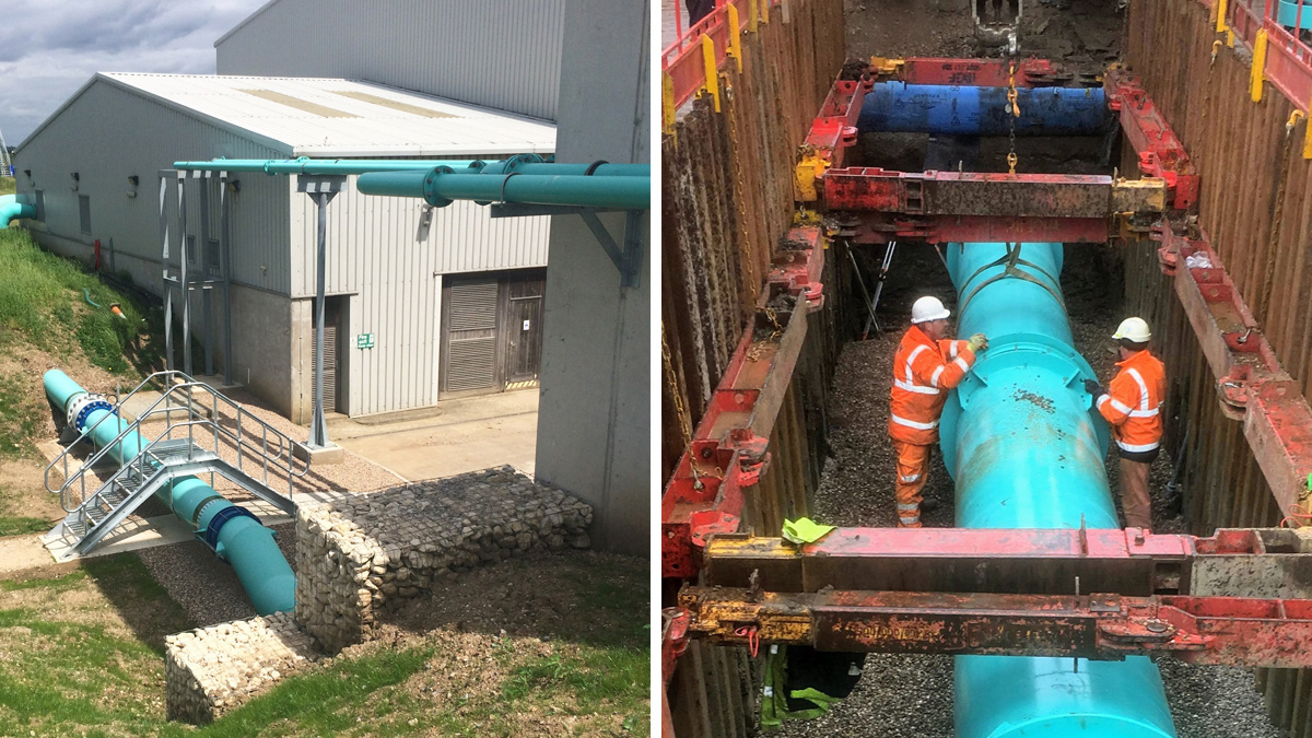- Existing GRP pipework had approximately 20m3 concrete surrounds at the necessary connection points. To avoid any issues with damaging these relatively fragile pipes, 24-hour hydro water demolition was undertaken over a three-day period. Once completed, new pipework and valves were installed and thrust blocks reinstated.
