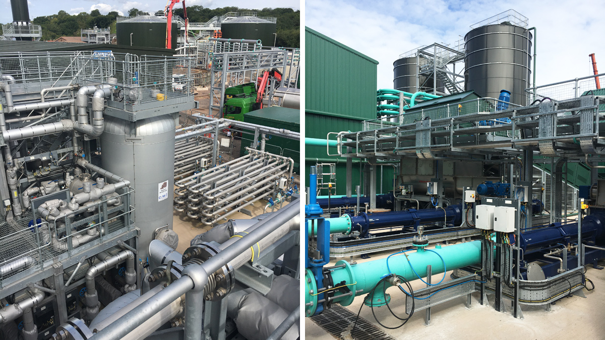 (left) Thermal hydrolysis plant and (right) imported sludge transfer system – Courtesy Welsh Water and Skanska