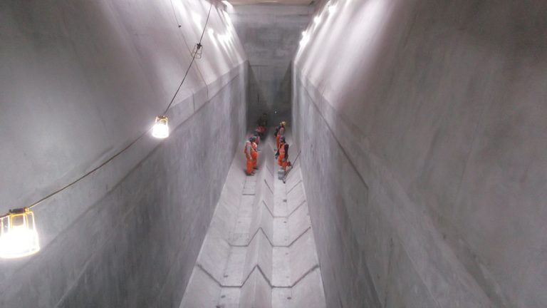 The design of the wet well originated from the USA and is a first for Thames Water. The slim width of the trench and consequent forward velocity transports debris to the active pumps to reduce build up of sediment and hence reduce the need for maintenance access for cleaning. Furthermore, the self-cleansing design and extractable canister pumps eliminates the need for man-access or a second wet well, hence mechanical downtime can be eliminated. More importantly, the necessity to put men in hazardous spaces is eliminated.