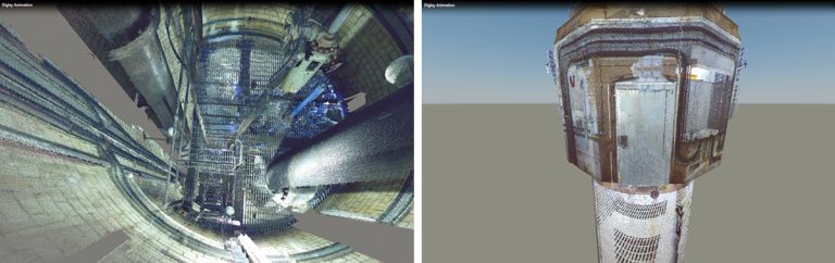 (left) Internal 3D scan of the valve tower and (right) External 3D scan of the existing valve tower – Courtesy of MMB