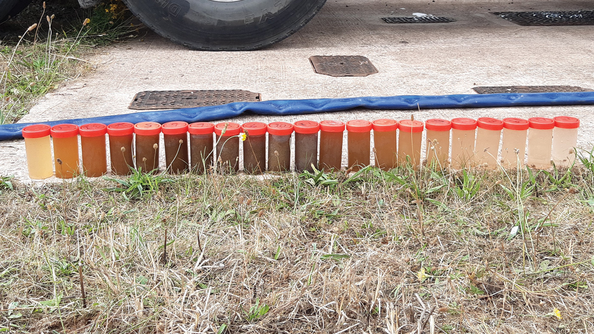 Ice pigging flushing samples – Courtesy of Wessex Water