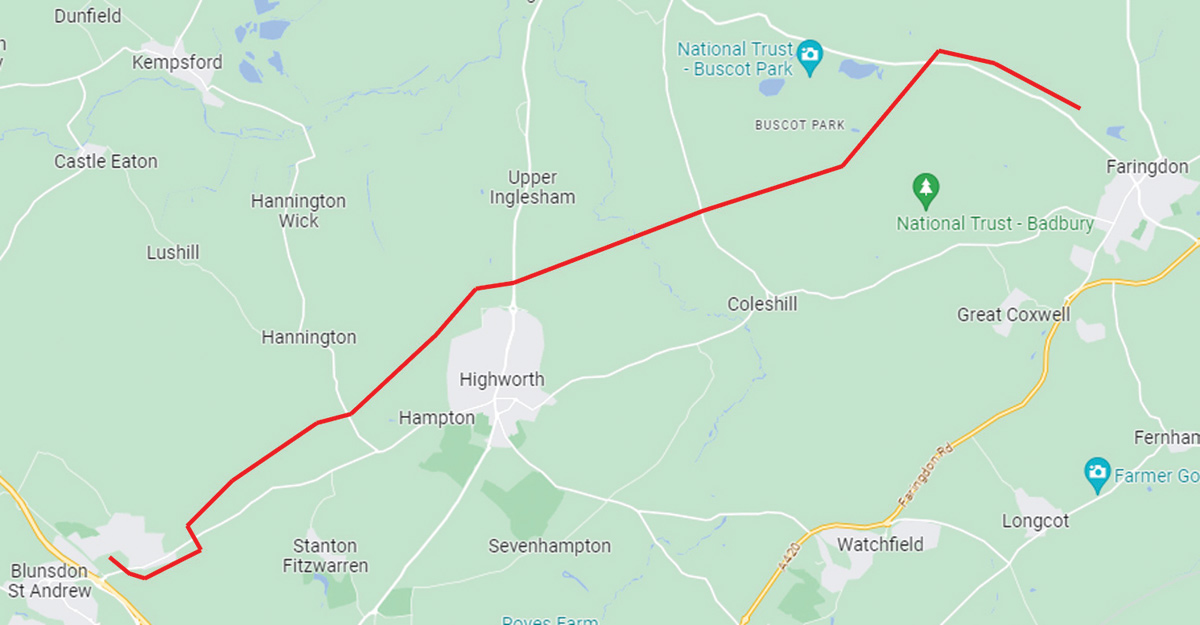 - This represents the most direct route between Faringdon WBS and Blunsdon Reservoir thus minimising the overall length of pipework required.