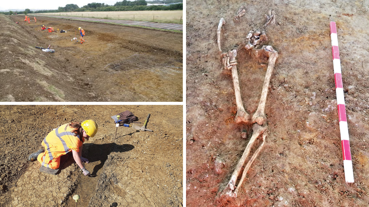 Archaeological investigations and (right) crouched burial – Courtesy of Kier Infrastructure and Overseas Ltd