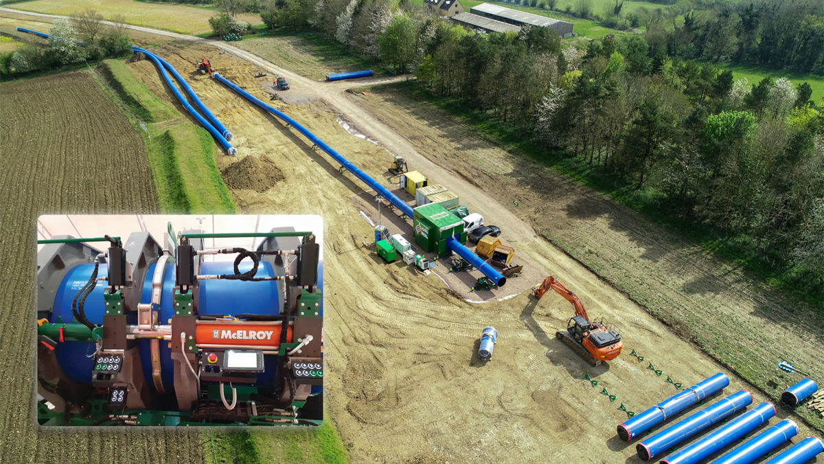 Pipe welding operation and (inset) McElroy Manufacturing welding machine – Courtesy of Kier Infrastructure and Overseas Ltd