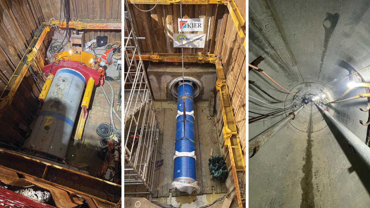 (left) Drive shaft, (middle) tunnel pipe insertion and (right) the completed tunnel – Courtesy of Kier Infrastructure and Overseas Ltd