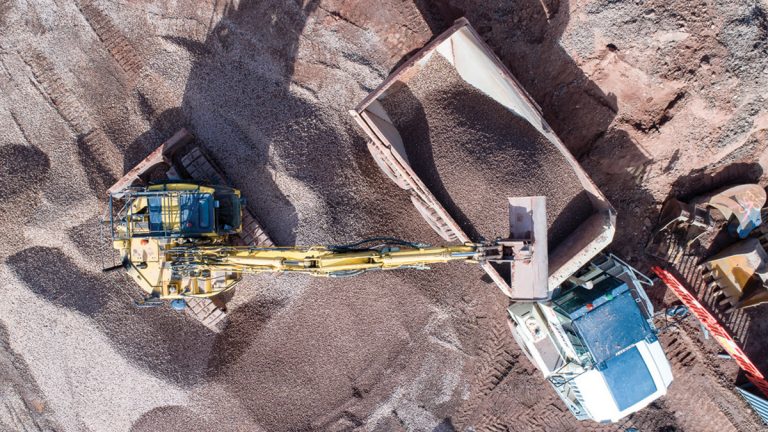 36T excavator loading graded sand for back-filling – Courtesy of Severn Trent Water