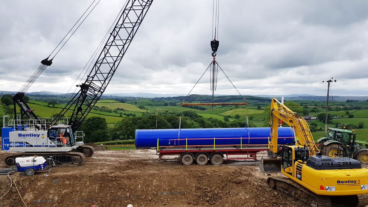 To inform the overall design, early surveys including topographical, environmental and ground investigation were undertaken. This allowed key project risks to be fully accounted for during initial scheme design. The pipe route took account of the sensitivity of local stakeholders and crossed largely pastural land, including organic fields, watercourses and roads. The drumlin hills of Cumbria further presented challenging topography for the construction of the pipelines.