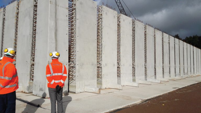 Precision placement of precast concrete wall units on site – Courtesy of MMB