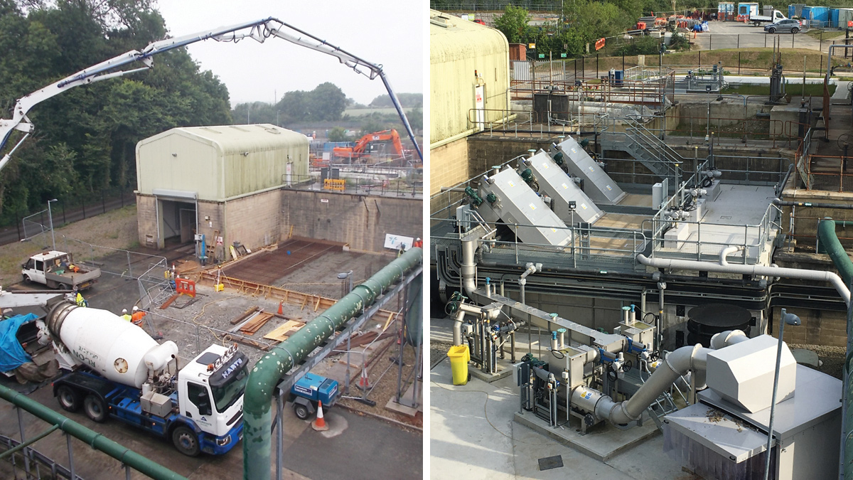(left) fine screen civil construction works and (right) fine screen works completed – Courtesy of SWW Delivery Alliance H5O