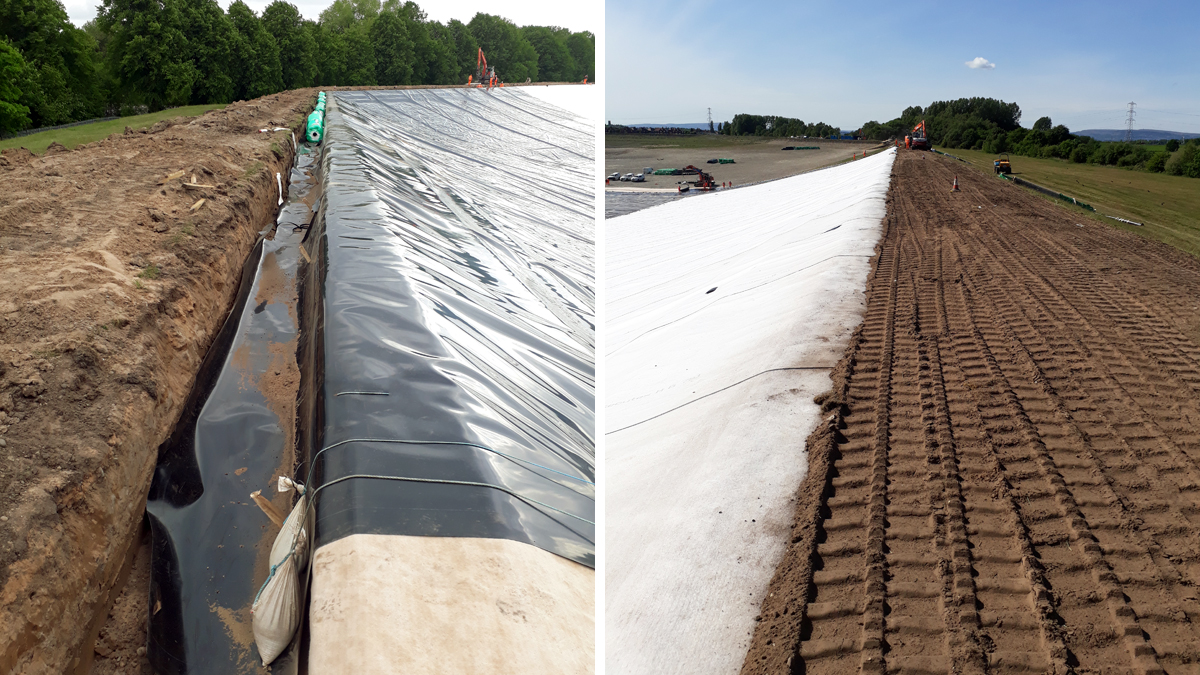 The lining system covers an area of 122,000m2 and comprised three separate layers supplied by Naue Geosynthetics Ltd (Bentofix® geotextile, Carbofol® geomembrane and Secutex® geosynthetic) placed on the embankments slopes for protection and to assist with access. The liner installation was undertaken by Sean Carr Lining Technology and was placed using excavators with a spreader bar before being anchored into the embankment clay core.