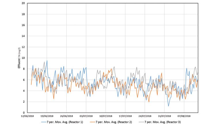 Figure 3: Effluent total nitrogen (average 5.3 mg/l)