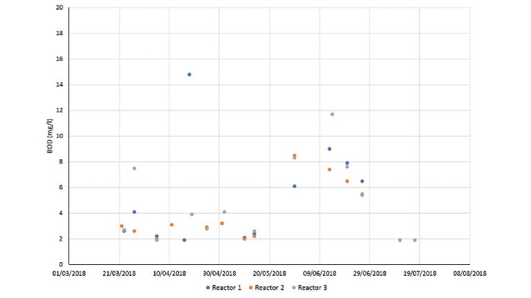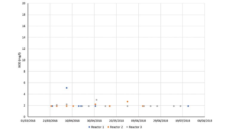 Figure 5: BOD (mg/l) after Nereda and Mecana (final effluent)
