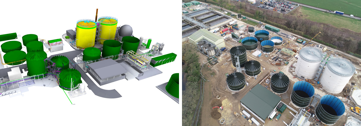 (left) 3D render of the site – Courtesy of Murphy Process Engineering, and (right) as built – Courtesy of YWS