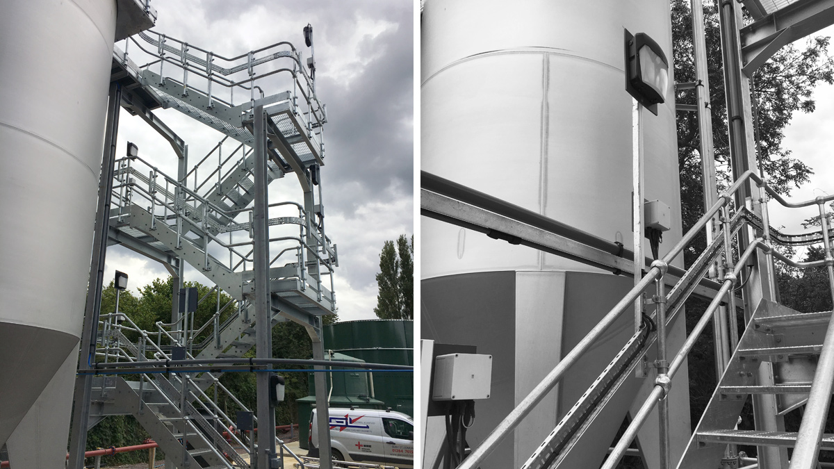 (left) Hydro International filter package vessels and (right) access platform to filter package vessels – Courtesy of @one Alliance