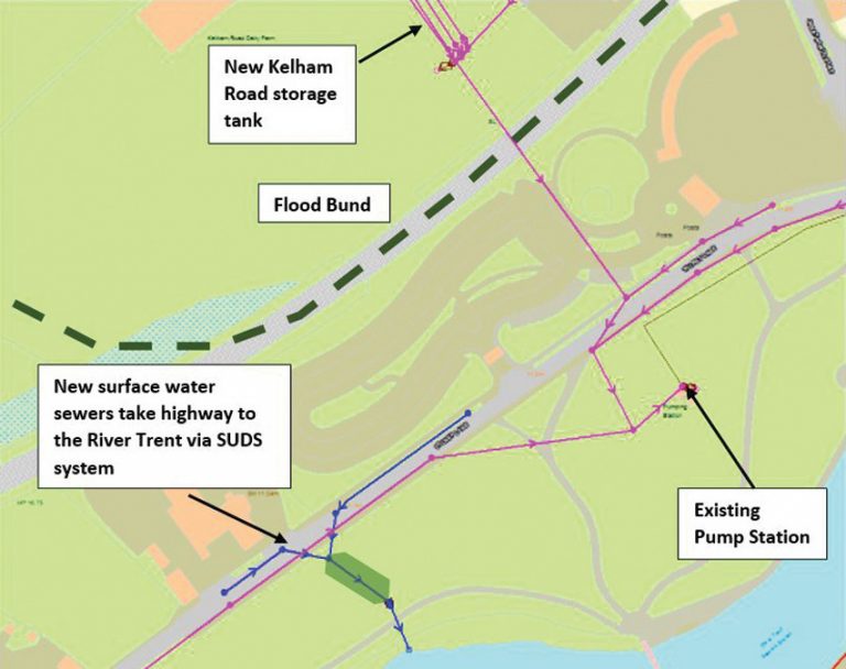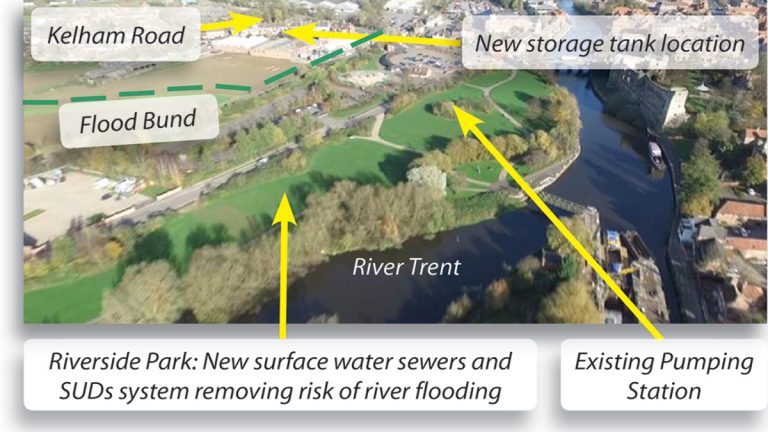 In July 2015 Severn Trent Water, Nottinghamshire County Council and NMCNomenca commenced the flood alleviation project on site. The solution was designed to resolve and eliminate the foul water flooding up to a 1 in 40 year rainfall event and the risk of highway flooding to 1 in 20 years to reduce the risk of flooding overall to properties on Kelham Road. The highway works were funded by NCC who paid directly to STW, this was then added to the works order to NMCN.