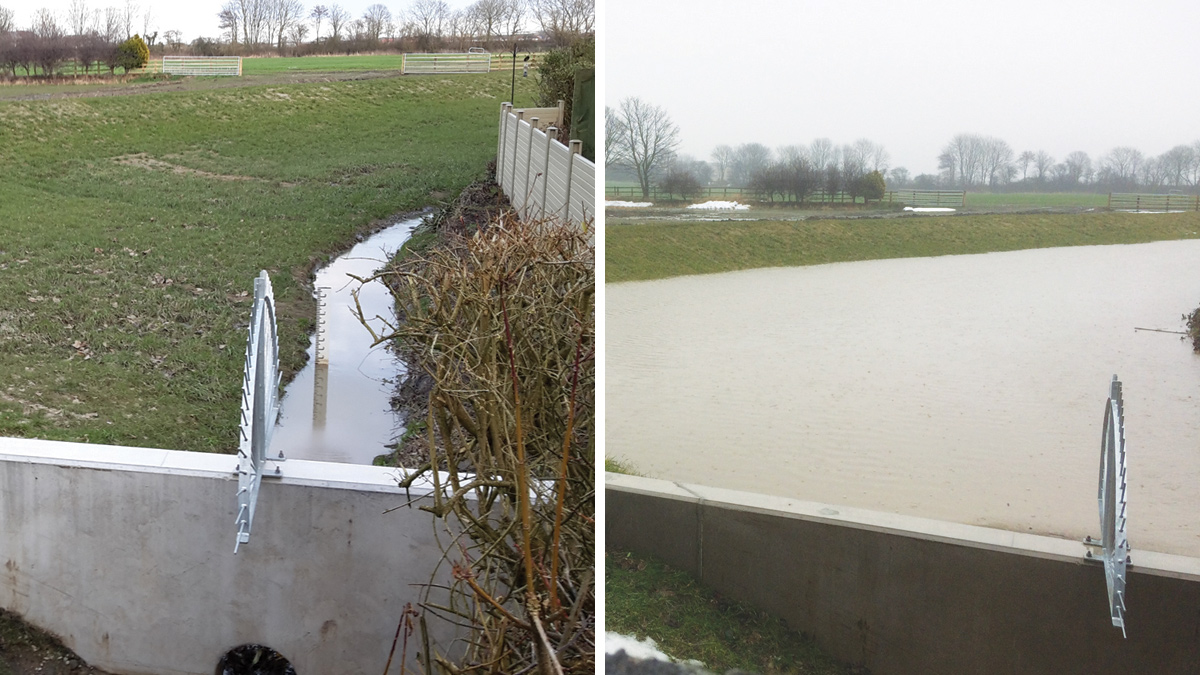 Each attenuation basin has a flow control to regulate the pass forward flow, and a weir to maintain the top water level and protect nearby properties, with an orifice through the weir to control the flows. In normal conditions the watercourse will flow as normal through the orifice within the precast concrete weir wall and the basins will remain dry.