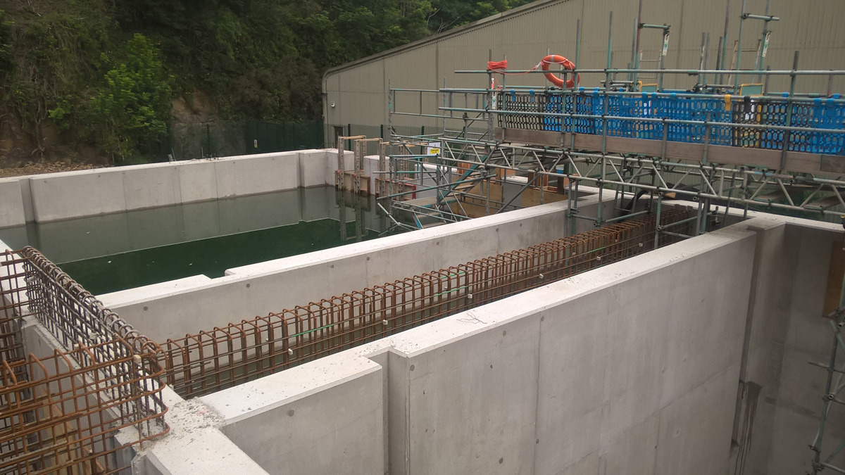 The MIEX plant substructure comprises a multi-level/multi-compartment water-retaining reinforced concrete box structure up to 8m in depth, incorporating various chambers, channels, openings and cast-in pipework connections. Even though the structure was significantly rationalised and simplified from the outline design concept, the layout remained complex and consequently a considerable number of concrete pours were required to form the finished structure. Approximately 1430m3 of structural concrete and 200t of reinforcement were used in the substructure construction, requiring a total of 35 (No.) individual concrete pours.