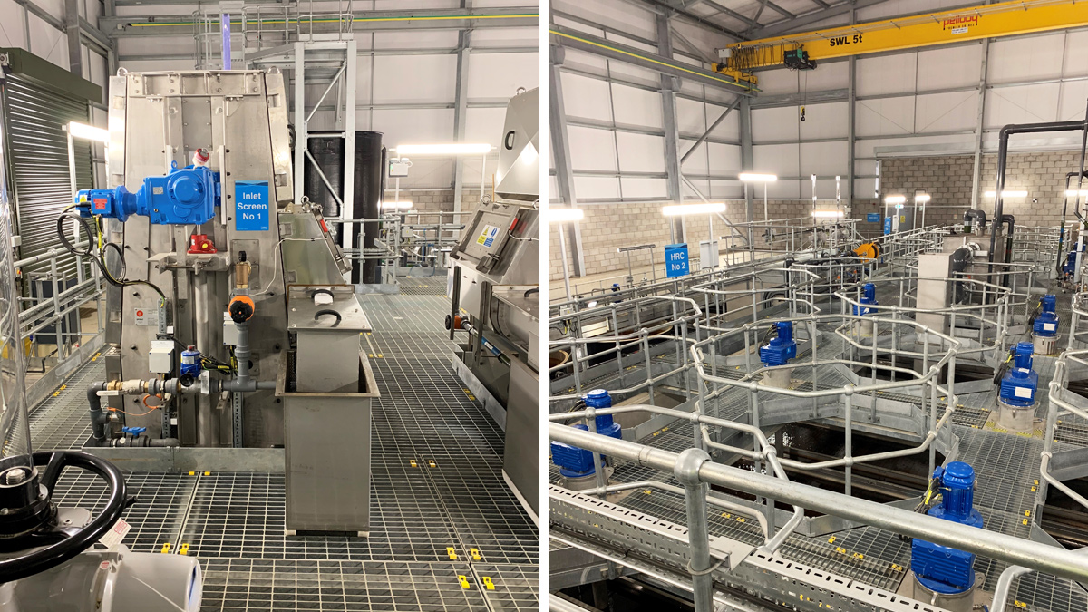 (left) inlet screens and (right) high rate resin contactors (HRCS) – Courtesy of MS2 JV