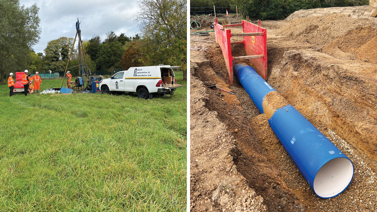 (left) Ground investigation work and (right) pipe installation – Courtesy of Essex & Suffolk Water