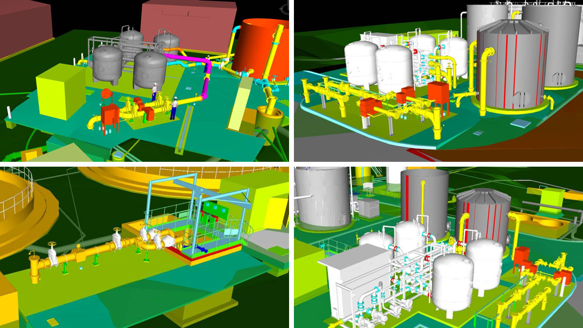 Model overviews of tertiary solids removal plant at Ledbury STW – Courtesy of Costain