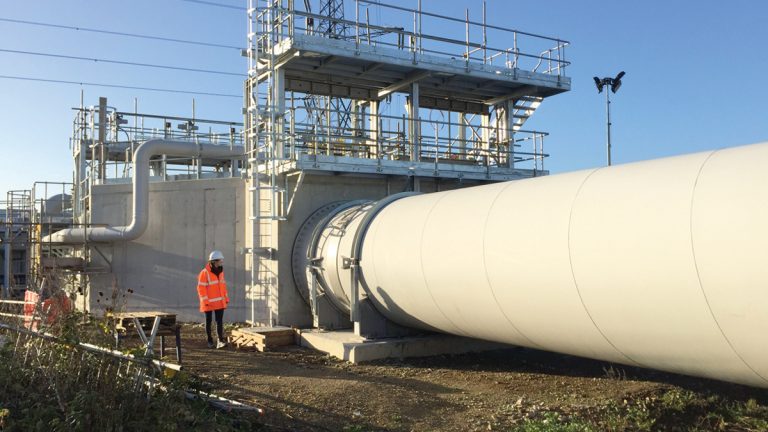Thames Water’s Lee Tunnel will create a cleaner, healthier River Thames by capturing combined sewer overflows at Abbey Mills Pumping Station, preventing 16 million tonnes of stormwater and sewage from being discharged into the River Lee each year. Up to 385,000m3 of stormwater and sewage will be stored in the 7km long tunnel and transferred to the Beckton STW, where it will be pumped out and treated. In future the Lee Tunnel will form the downstream section of the 25km long Thames Tideway Tunnel. This combined tunnel will capture an annual average of 39 million tonnes of stormwater and sewage from the 35 (No.) most polluting combined sewer overflows along the River Thames. The project required the construction of large elevated pipelines to transfer flow pumped out of the tunnel from the pumping shaft 400m across the operational Beckton STW site to the inlet works for treatment; this article details this section of the project.