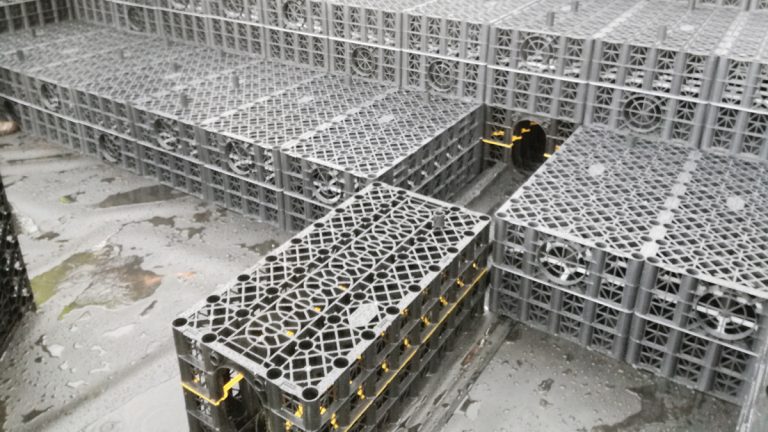 Assembly of geocellular crates with inspection channel – Courtesy of NMCNomenca