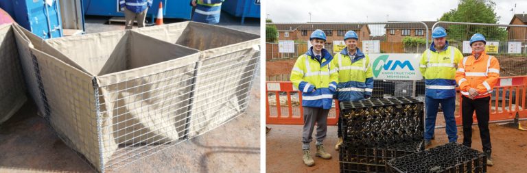 NMCNomenca developed a pioneering approach of using Hesco MIL Units filled with Type 1 and as-dug sand material to act as a temporary style gabion wall design. This was installed around the perimeter of the excavation using a drag box, and consequently backfilled and buried. The main excavation for the geocellular crates could then safely be carried out within the confines of this innovative temporary works design.