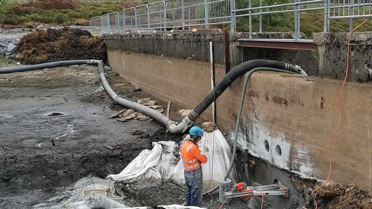 A condition of the NRW impoundment licence was for a continuous compensation flow of at least 20 l/s for the duration of the works. This meant pumping to the watercourse, which had to be continually monitored. It was hoped to use a cloud-based telematics tool that makes it easy to monitor the pumps off-site but unfortunately, due to lack of signal, this did not work meaning William Hughes Civil Engineering needed to attend site over the weekends to check on the compensation flows. The summer of 2022 proved to be exceptionally dry, which crated a challenge in meeting compensation flows whist also not allowing the remaining lake to become too low.