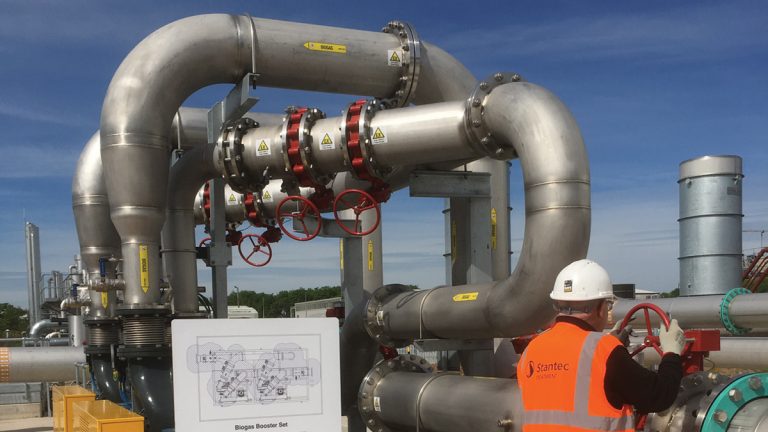 Biogas system and recirculation pipework – Courtesy of Stantec Treatment
