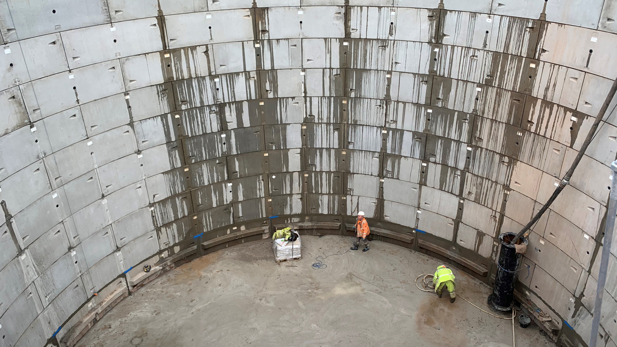 The 800m3 detention tank was designed as a circular segmental shaft, 15m in diameter and approximately 10m deep.