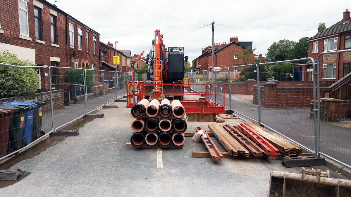 Site working area in Moor Road for sewer installation – Courtesy of United Utilities