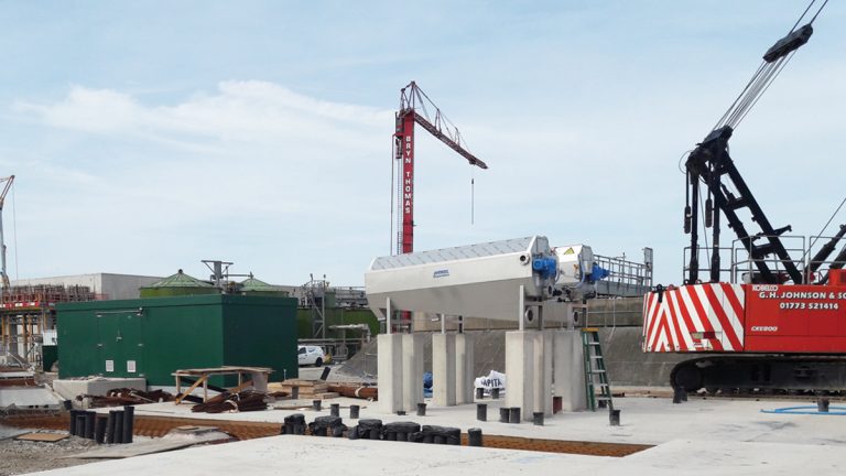 Morecambe WwTW: Rotary drum thickener area during construction – Courtesy of United Utilities