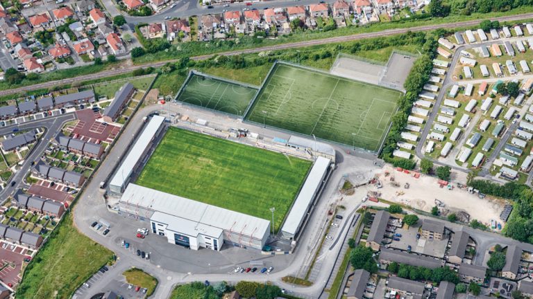 Morecambe Nereda® plant with mechanical installation ongoing in Cell 3, water test ongoing in Cell 2 and completion of civil works in Cell 1 – Courtesy of United Utilities