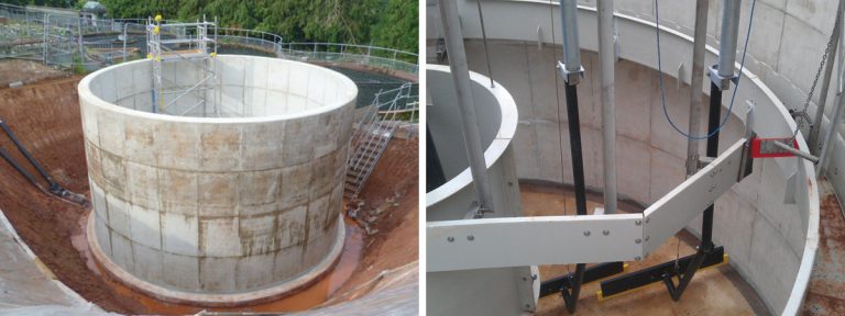 The existing reinforced concrete Dortmund primary settlement tanks were unable to treat the effluent to a sufficient quality to suit the new tertiary process. There was limited space on site available to construct replacements but a solution was found for a 6.3m diameter RC tank located adjacent to the site access road on a sloping area of disused ground.