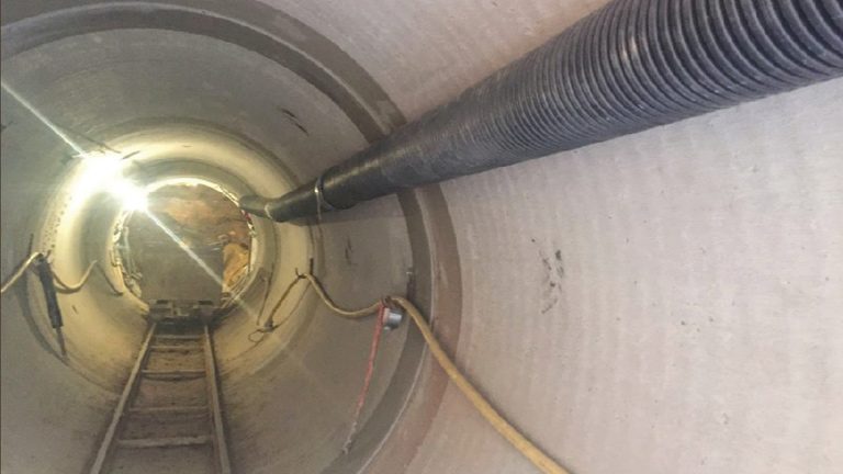 The tunnel was constructed using the ‘closed face’ method, with pipe-jacking used to install the pipes behind a remotely-controlled and guided microtunnel boring machine (MTBM). The remote control operation takes places from a control centre above the launch shaft.
