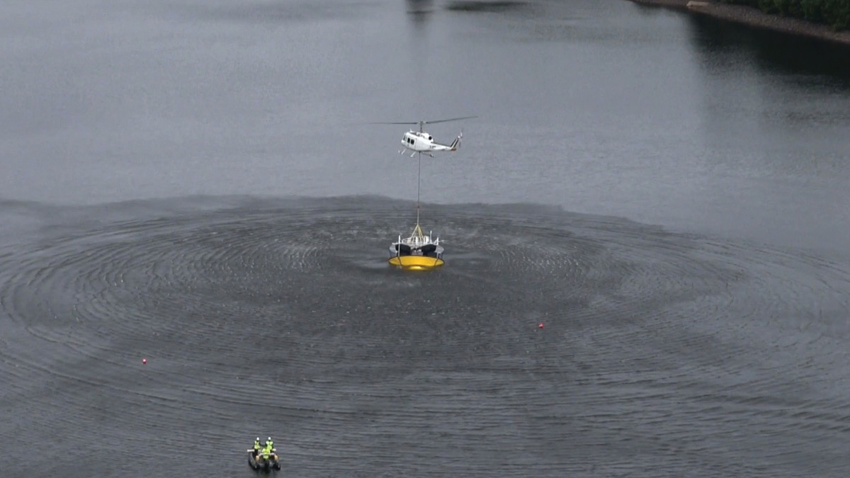The ResMix ‘Source Management’ system specified for the project was shipped from Australia and installed by Gurney Environmental, who are based in East Anglia. Experience had shown that the preferred method of installation into the reservoir was by helicopter mainly due to complexity of getting access to the edge of the reservoirs by large cranes.