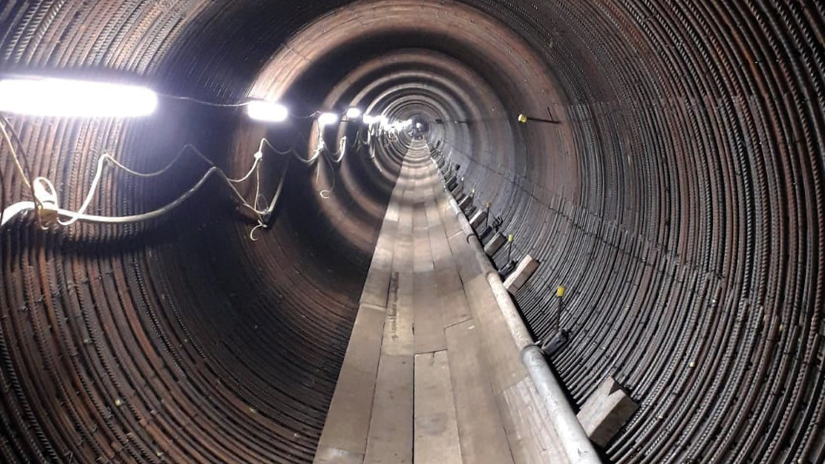 Tunnel in the process of being relined with the rebar installed – Courtesy of Barhale & Thames Water