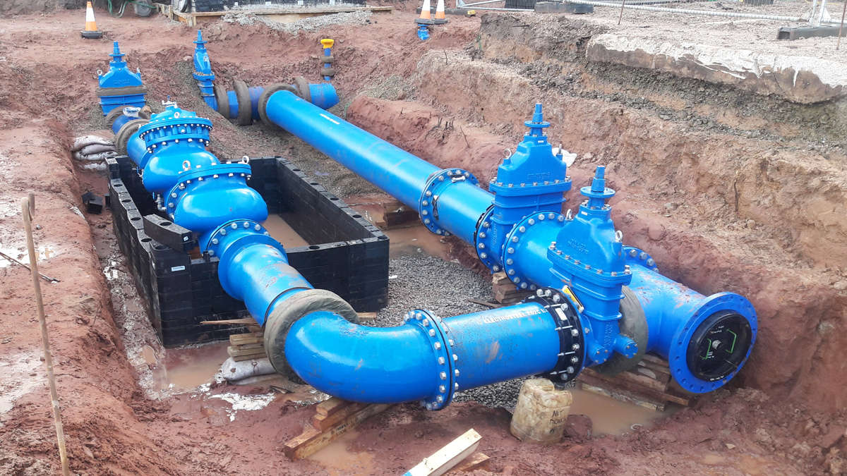 Within the site, additional cross-connecting pipework was installed so water within the 21” main could be connected into the feed pipework and pumping stations to the southern DMAs. PODDS (Prediction and Control of Discolouration in Distribution Systems) modelling was undertaken to assist with planning of a flushing and conditioning exercise for the reversal of the 21” main to the north of Winwick.