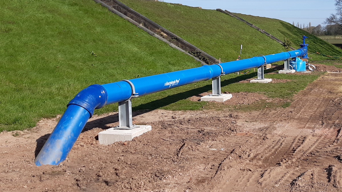 A desktop study of existing site drawings, combined with GPR and trial holes, showed that there was an extensive network of below-ground services around the site and in particular in the vicinity of the blending tank. Although for both security and hydraulic design it was considered preferable to locate the new header main below ground, this would have been a high-risk solution and would have required multiple low and high points to cross existing services. The design was developed to include for this header main to be constructed above ground. Fittings such as air valves were selected to be suitable for low-head sealing, and the arrangement allowed the pipework to be positively isolated from the network when not in use to mitigate the potential risk of ingress or contamination.