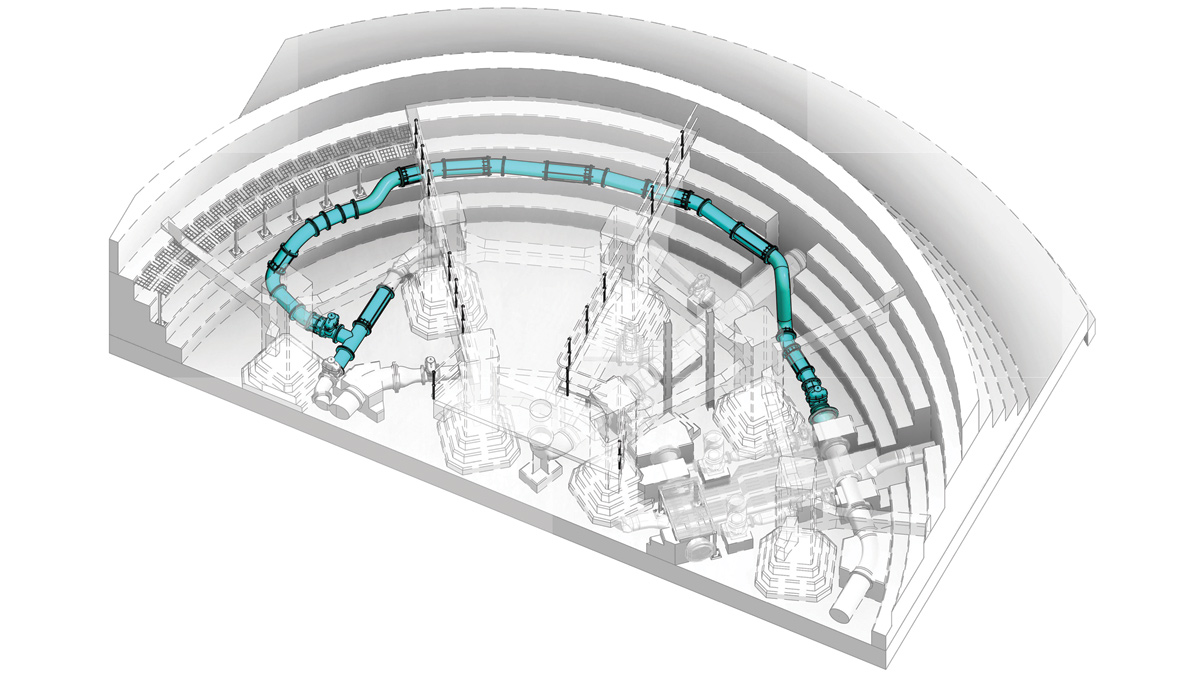 Isometric drawing of pipework within the tower basement – Courtesy of MMB